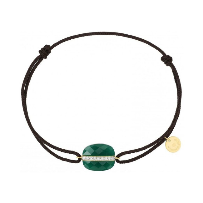 Aurore Bracelet Morganne Bello Aurore Coussin en cordon chocolat, or jaune, agate verte et diamants